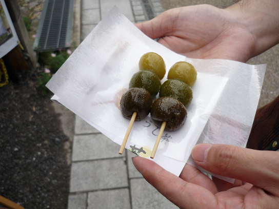 茶団子のお店があったので姉と1本ずつ購入。1本130円です。